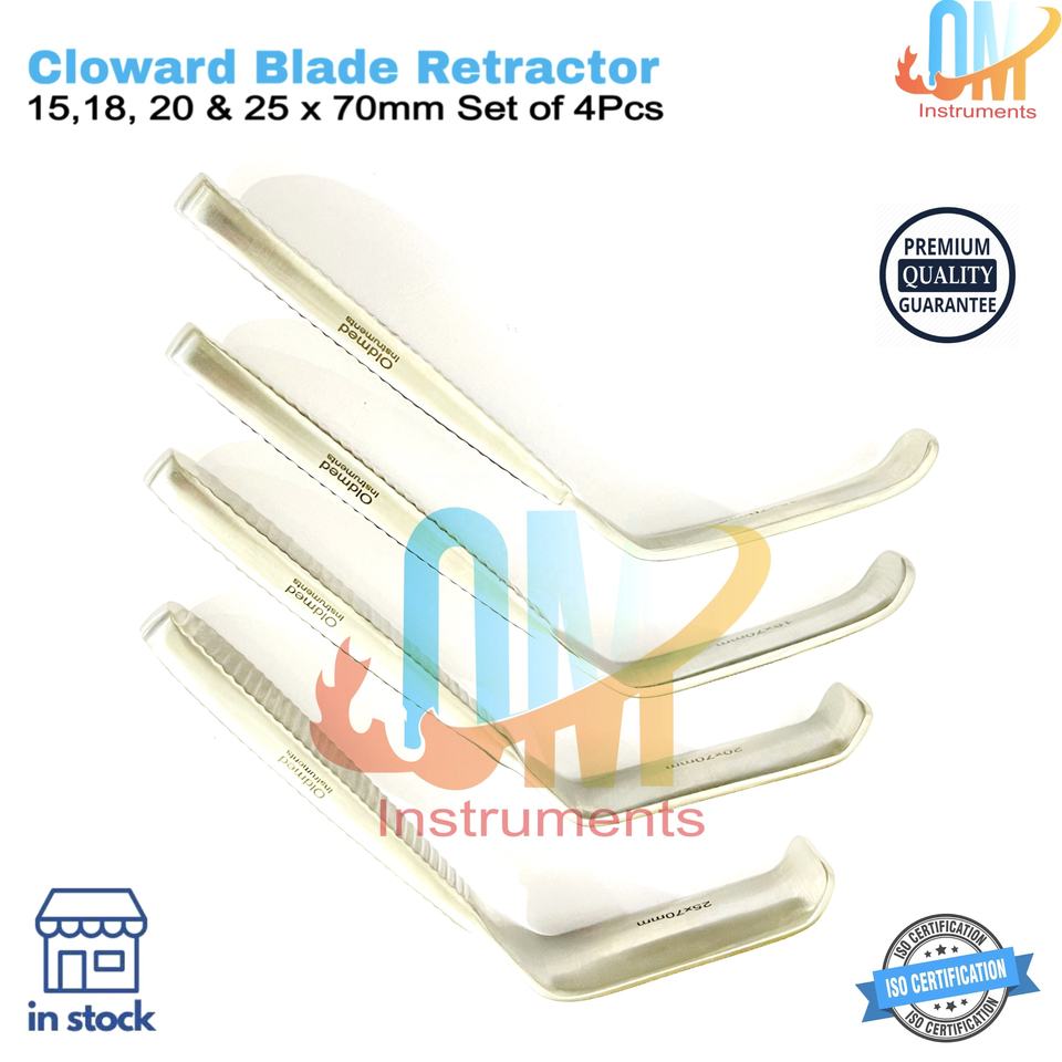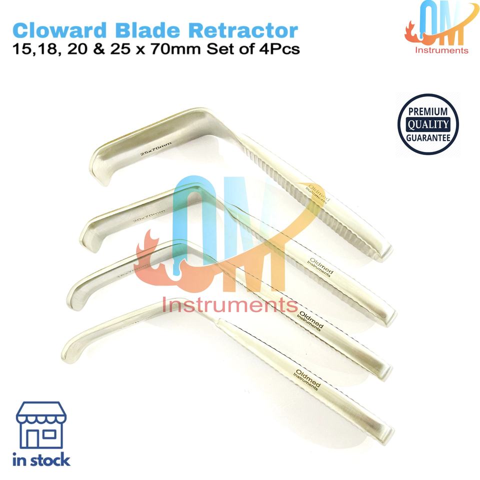 ชุดเครื่องมือผ่าตัดกระดูกและข้อ OldMed Cloward Blade Retractor 4 ชิ้น ผลิตจากเหล็กกล้าไร้สนิมเยอรมัน แข็งแรง ทนทาน ได้รับการรับรองมาตรฐาน ISO ใช้ซ้ำได้