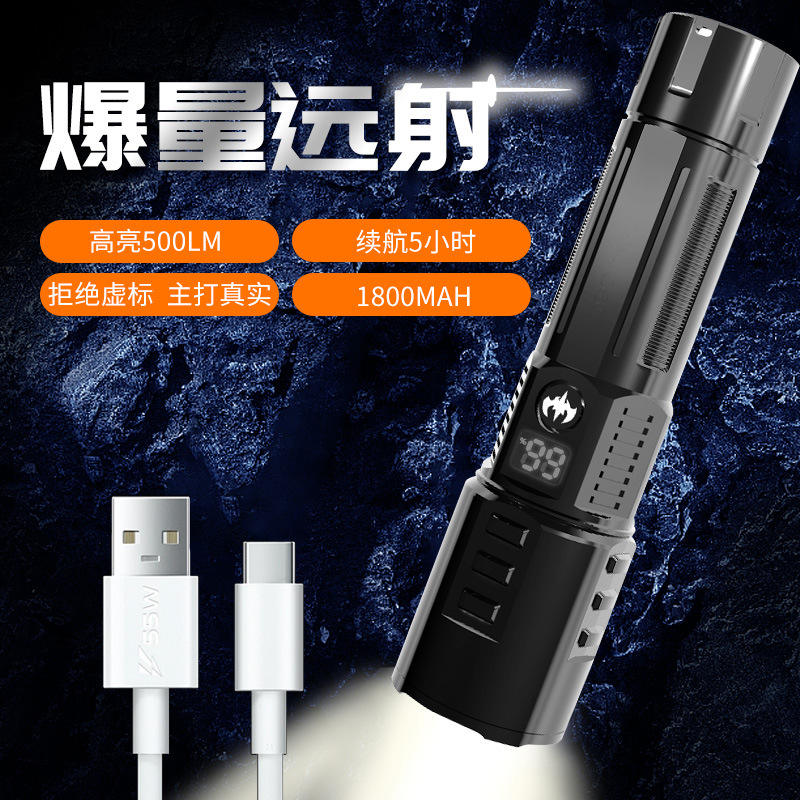 Olight ไฟฉายแบบชาร์จไฟได้1800mAh LED ซูมแสดงไฟฉุกเฉินแบบพกพาสีดำ