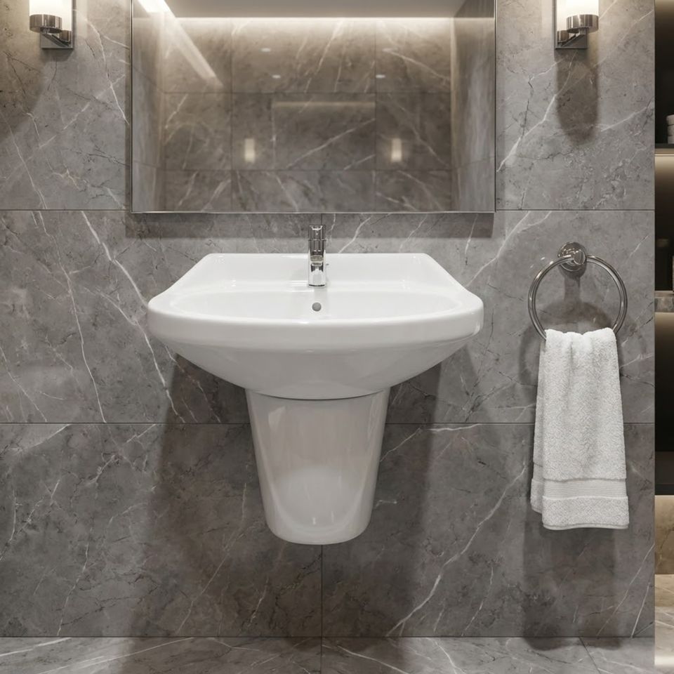 อ่างล้างหน้าแบบติดผนัง Oliva Eco-Friendly พร้อมฐานครึ่งวงกลม สำหรับใช้ในโรงพยาบาลและบ้านพัก