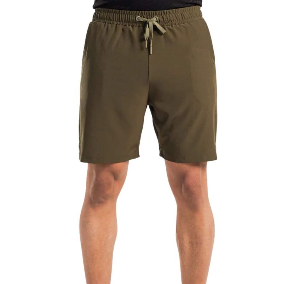 กางเกงขาสั้นเพาะกายสีเขียวมะกอกผู้ชายแห้งเร็วออกกำลังกายกีฬาวิ่งชุดกีฬาชุดออกกำลังกายฟิตเนส
