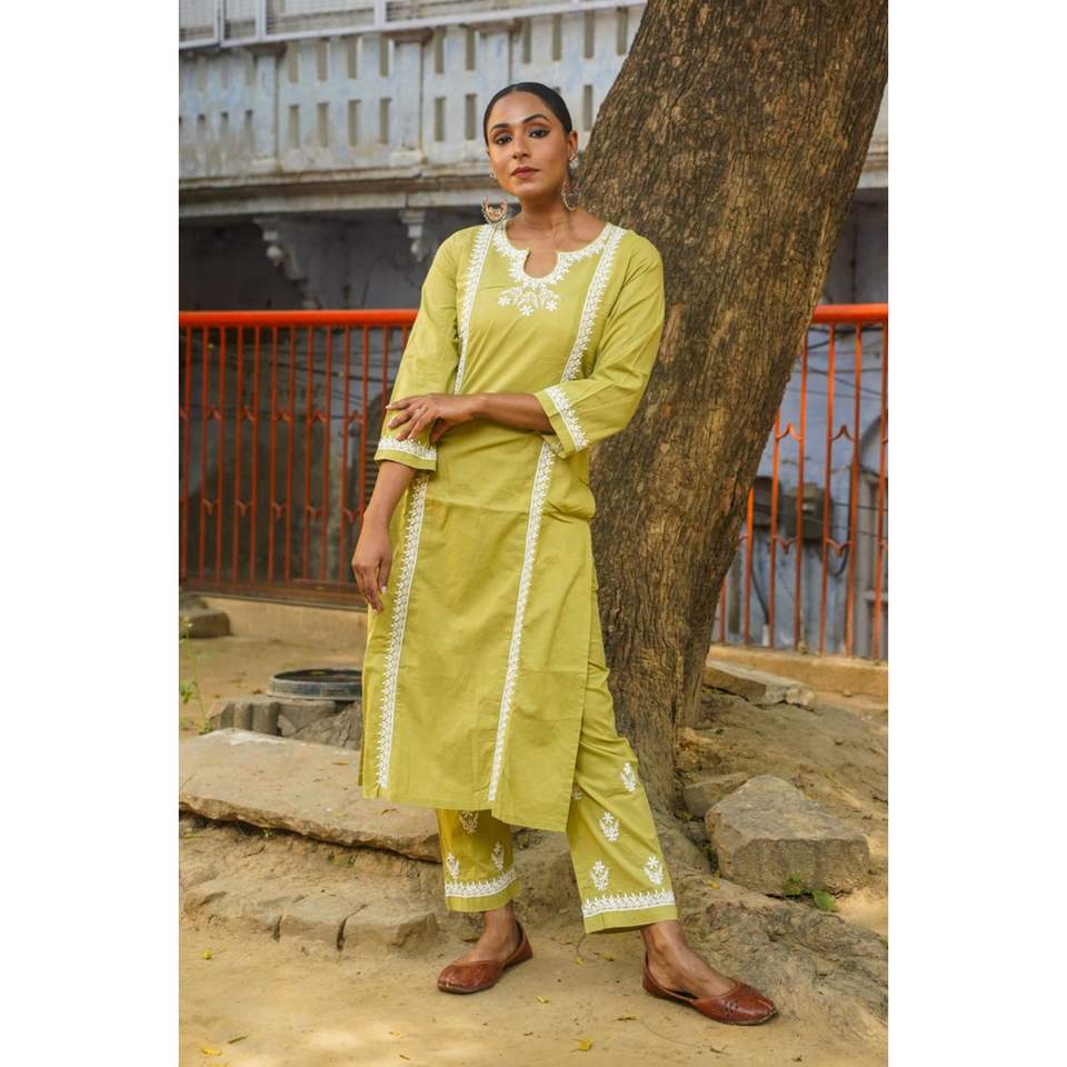 ชุดสีเขียวมะกอกพร้อมเย็บปักถักร้อยที่ซับซ้อนตลอดทั้งวันมีคุณสมบัติที่สามารถซักได้ใส่สบายยกระดับตู้เสื้อผ้าสไตล์หวานๆของคุณ
