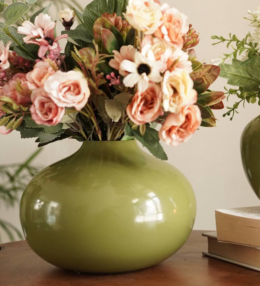 แจกันดอกไม้เหล็กสีเขียวมะกอกออกแบบชายฝั่งที่ไม่ซ้ำกันสำหรับโต๊ะในบ้านสำหรับห้องเรียนห้องนั่งเล่นห้องนอนตกแต่ง