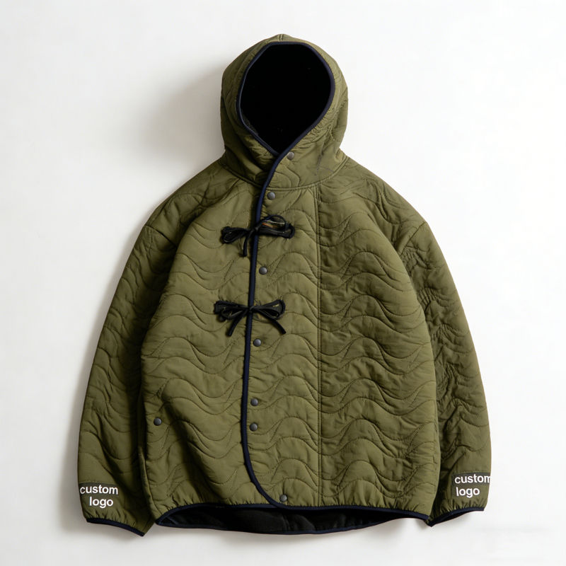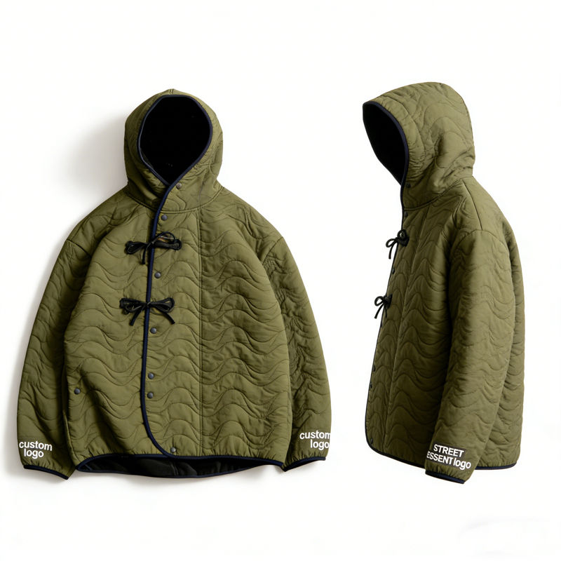 เสื้อฮู้ดดี้สีเขียวมะกอกสำหรับผู้ชาย ทรงโอเวอร์ไซส์ แบบมีกระดุมติด ตกแต่งขอบตัดสี รับสกรีนโลโก้ เสื้อฮู้ดดี้ลำลองสไตล์สตรีทแวร์