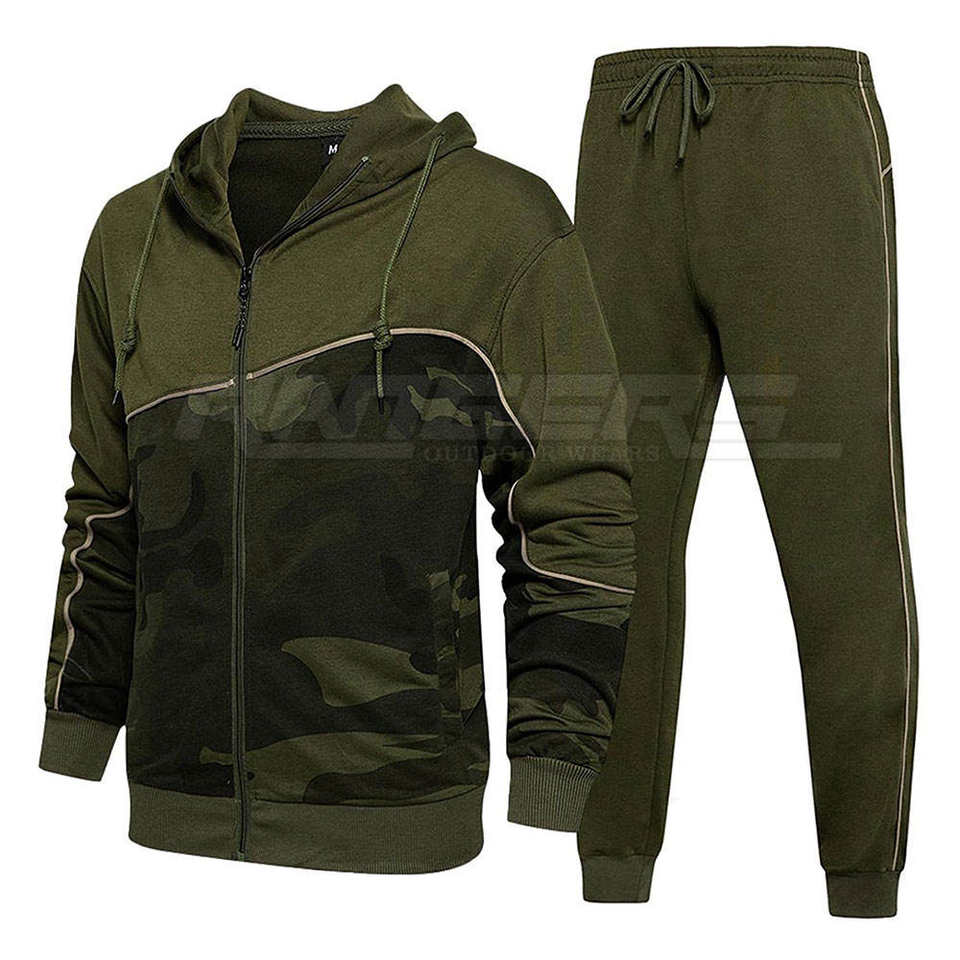 ชุดวอร์มสีเขียวมะกอก ลายพราง แขนยาว ผ้าฝ้ายผสมโพลีเอสเตอร์ แบรนด์ส่วนตัว ชุดกีฬาขายส่ง เสื้อฮู้ดดี้ผู้ชาย ชุดวอร์ม