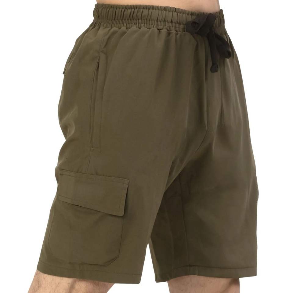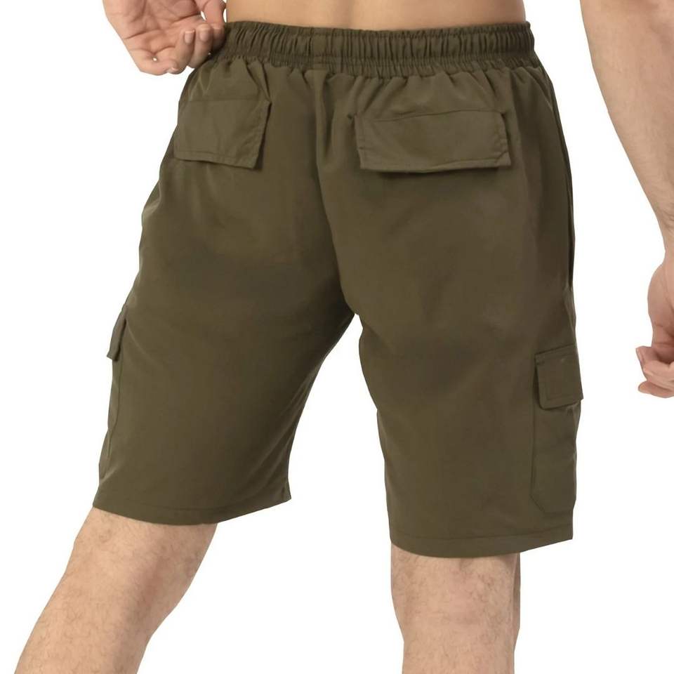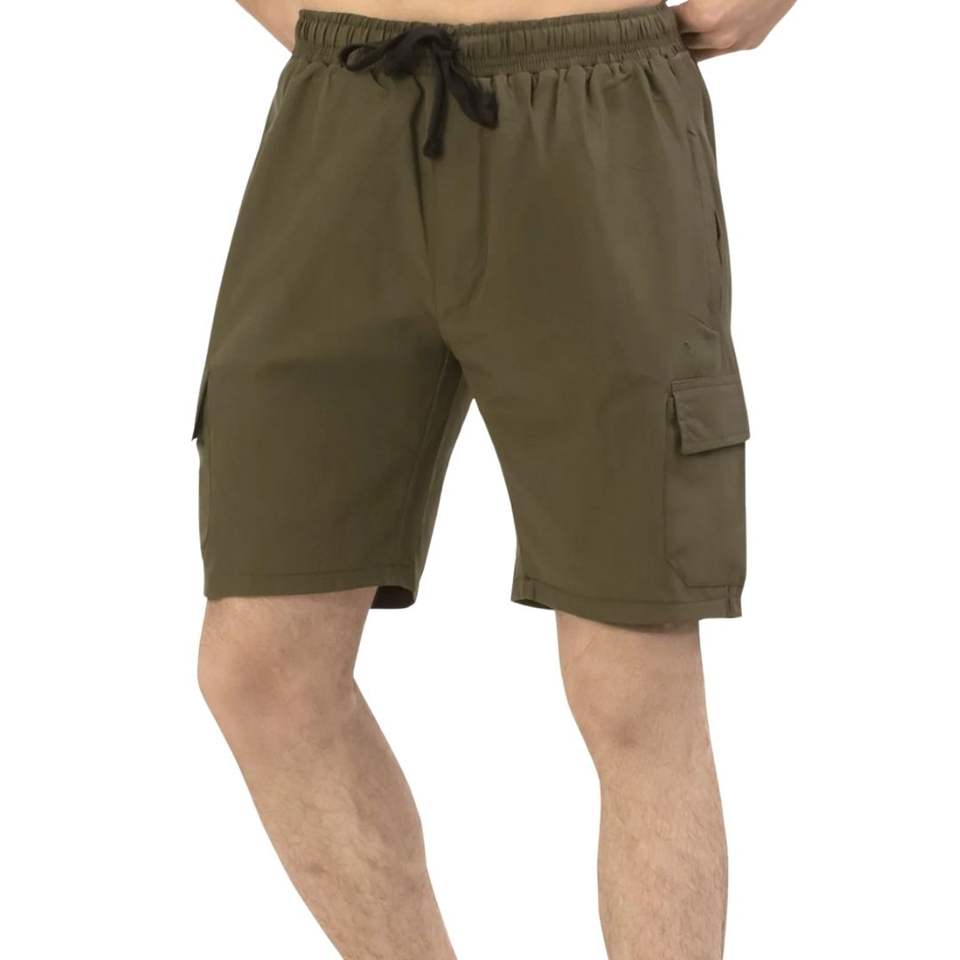 กางเกงขาสั้นคาร์โก้สีเขียวมะกอกสำหรับผู้ชาย ออกกำลังกาย เล่นกีฬา แห้งเร็ว เหมาะสำหรับฝึกซ้อม วิ่ง ฟิตเนส