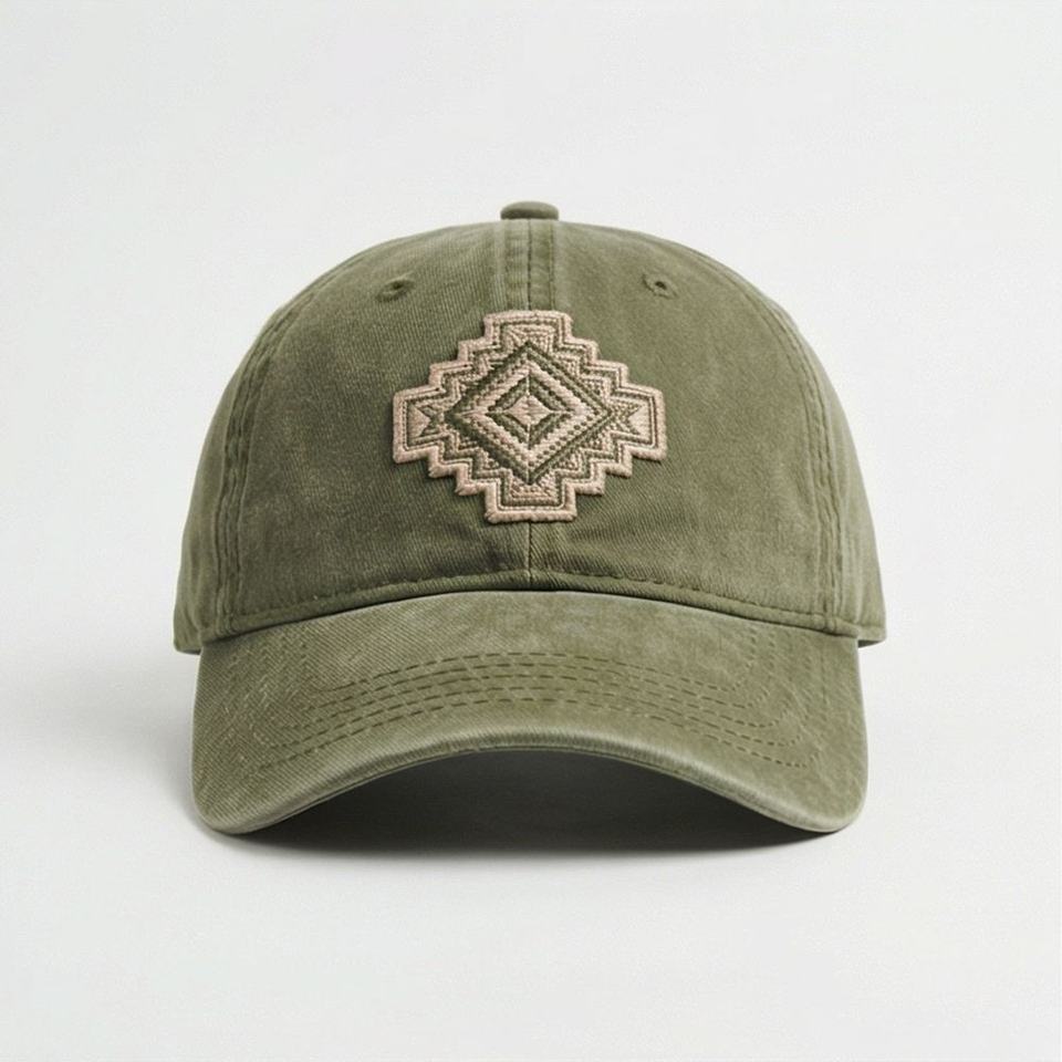 หมวกแก๊ปสีเขียวมะกอกสไตล์วินเทจ ลวดลายเพชรแอซเท็ก ปักลาย งานปักคุณภาพสูง สไตล์โดดเด่น พรีเมียม ใส่สบาย หัวหน้าที่สวมใส่สบาย