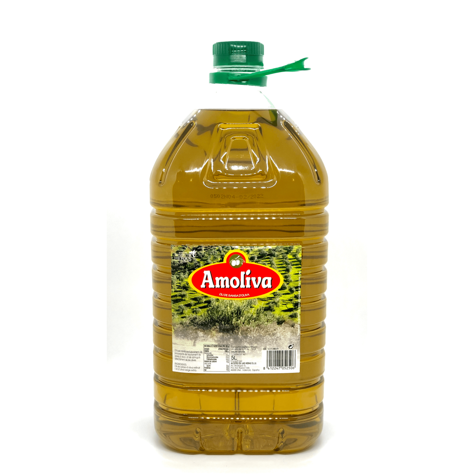 น้ำมันมะกอกเหลือจากการสกัดในขวด PET ขนาด 5 ลิตร, น้ำมันปรุงอาหารอโมลิวา (น้ำมันมะกอกเหลือจากการสกัด 95% และน้ำมันมะกอกบริสุทธิ์ 5%)