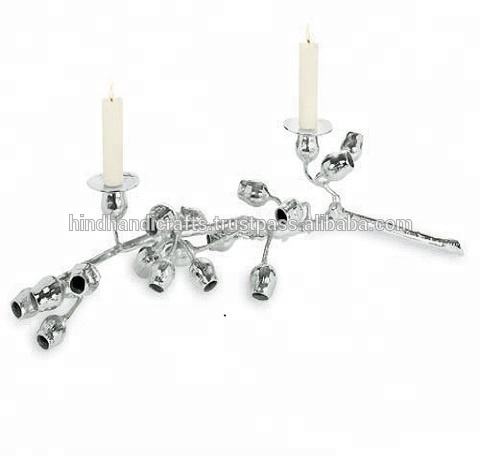 เชิงเทียนเมโนราห์รูปกิ่งมะกอกทำจากอะลูมิเนียมขัดเงาสีเงินสำหรับตกแต่งบ้านในเทศกาลคริสต์มาส