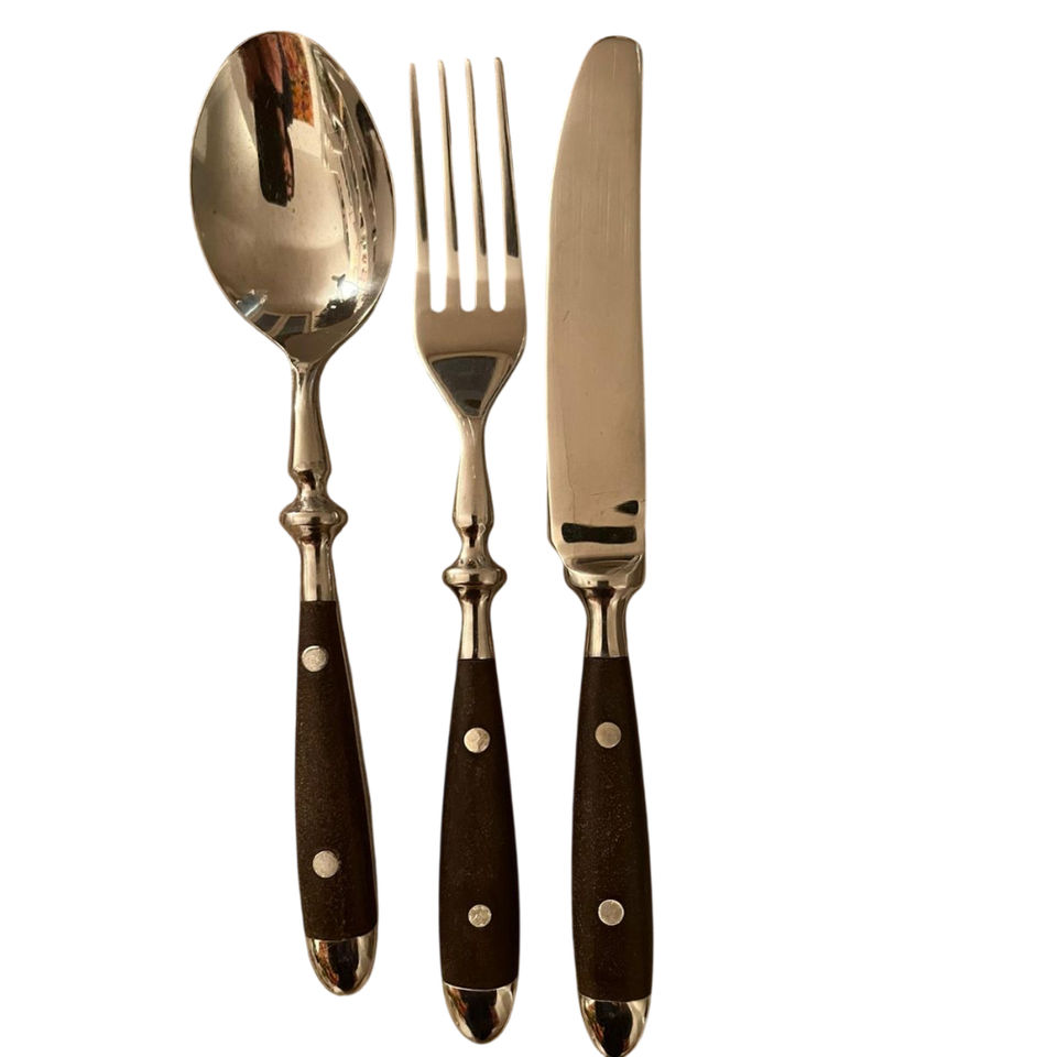 ชุดช้อนส้อมพร้อมด้ามจับไม้มะกอก คุณภาพสูง ผลิตจากสแตนเลสสตีล ดีไซน์ทันสมัย สวยงาม เหมาะสำหรับใช้ในบ้านและครัว