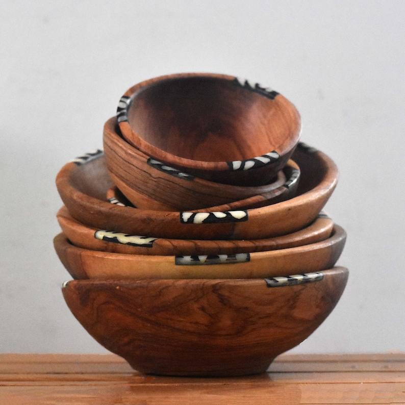 ชามไม้มะกอกทำมือสไตล์เรียบง่ายตกแต่งบ้านสไตล์แอฟริกันพร้อมรายละเอียดกระดูกที่ซับซ้อน