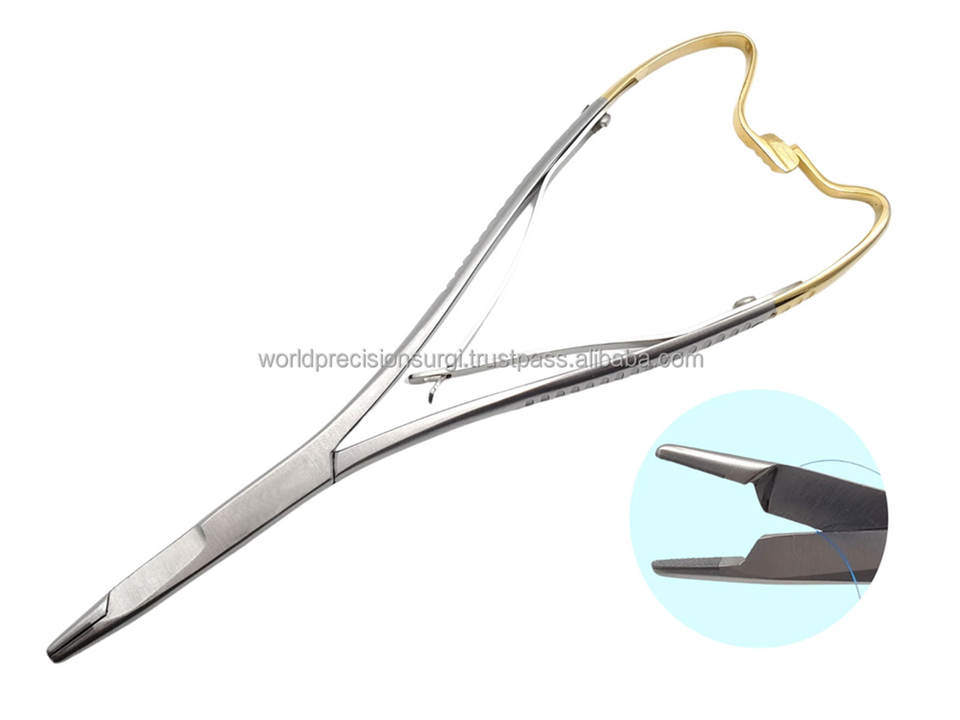 ที่จับเข็มแบบแมนนวล Olsen Mathieu Hegar ขนาด 170 มม. ทำจากสแตนเลสสตีลคุณภาพสูง ได้รับการรับรองมาตรฐาน CE ชุดอุปกรณ์ผ่าตัด เครื่องมือทางทันตกรรมและการแพทย์