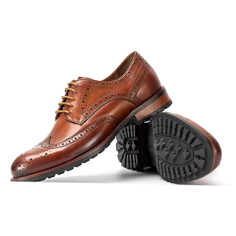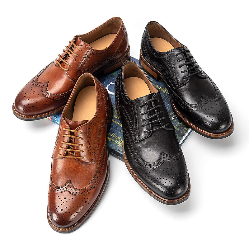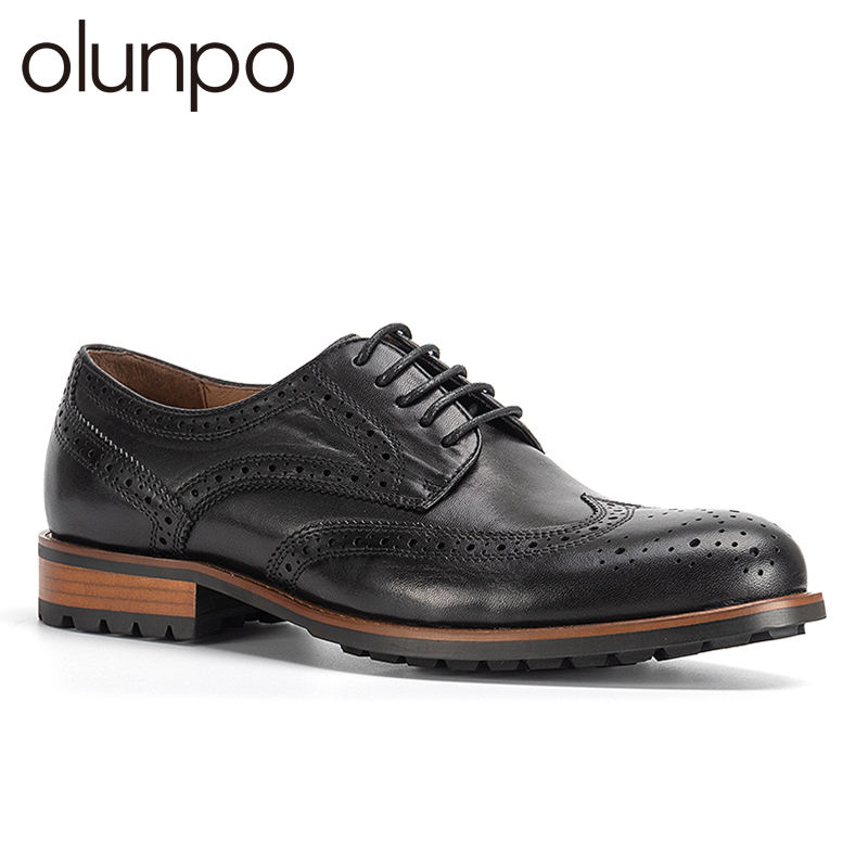 Olunpo Brogue รองเท้าดาร์บี้แกะสลัก, รองเท้าหนังแฮนด์เมดหนังแท้รองเท้าแต่งงานสำหรับผู้ชาย