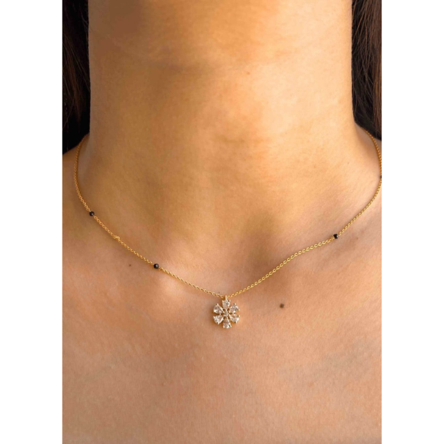 สร้อยคอทองหุ้มประดับเพชร CZ พร้อมลูกปัดสีดำสำหรับผู้หญิง สไตล์เรียบง่าย เหมาะสำหรับใส่ทุกวัน จาก Om Fashion Studio