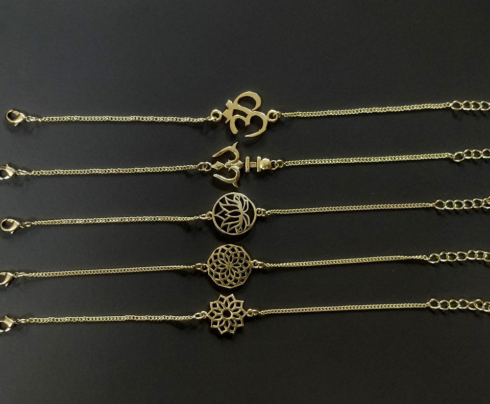 Om สร้อยข้อมือโซ่สีเงินสีทอง,สร้อยข้อมืออินเดียศาสนา OM เครื่องประดับสำหรับผู้ชายและผู้หญิง