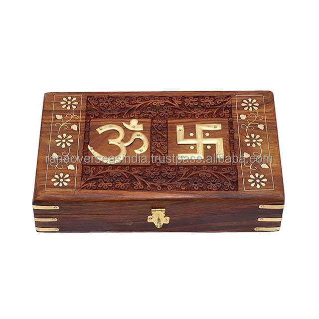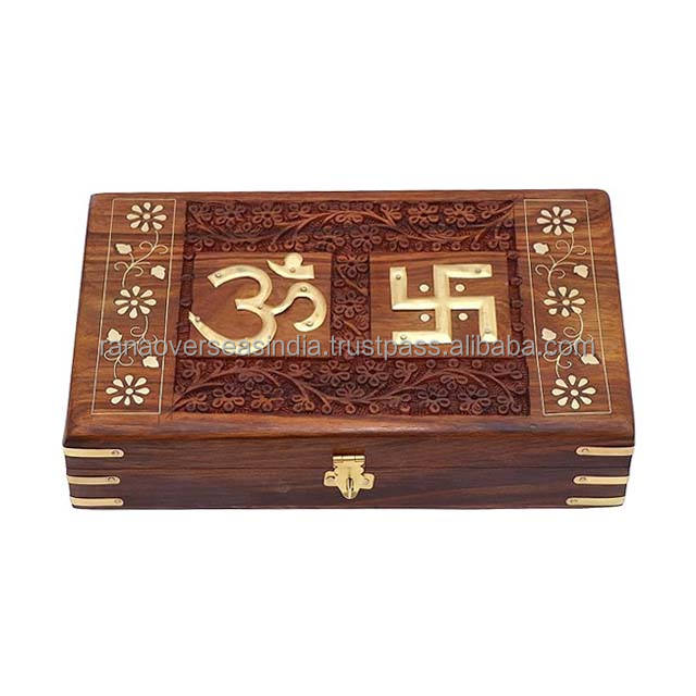 OM & swastik ทองเหลืองรูปแบบการฝังกล่องเครื่องประดับไม้ที่จัดระเบียบงานฝีมือในรูปแบบและขนาดที่หลากหลายในราคาที่เป็นมิตร