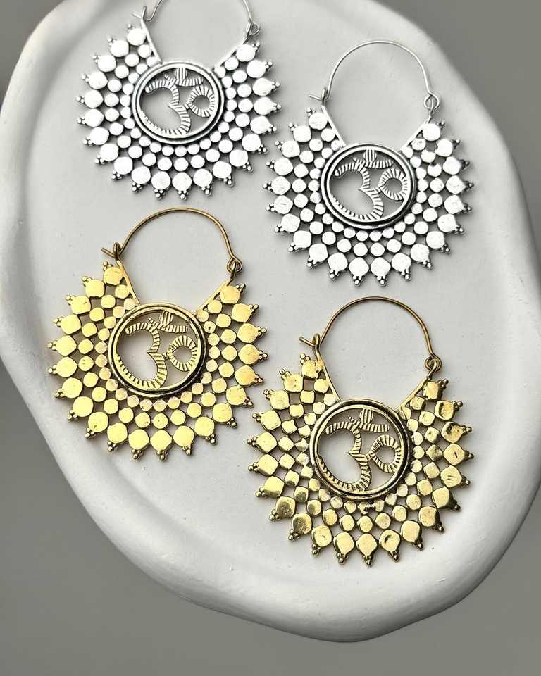 ต่างหูทองเหลืองรูปออมสัญลักษณ์ สีทองและสีเงิน ทำมือ ลายพระอาทิตย์แบบชนเผ่า สำหรับผู้หญิง เครื่องประดับทางจิตวิญญาณ