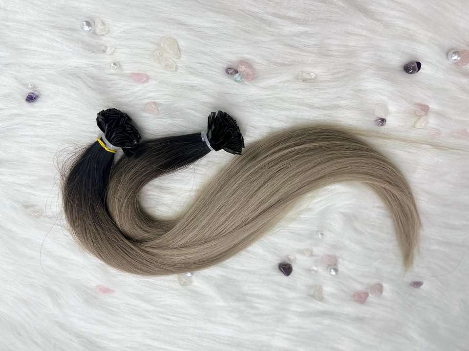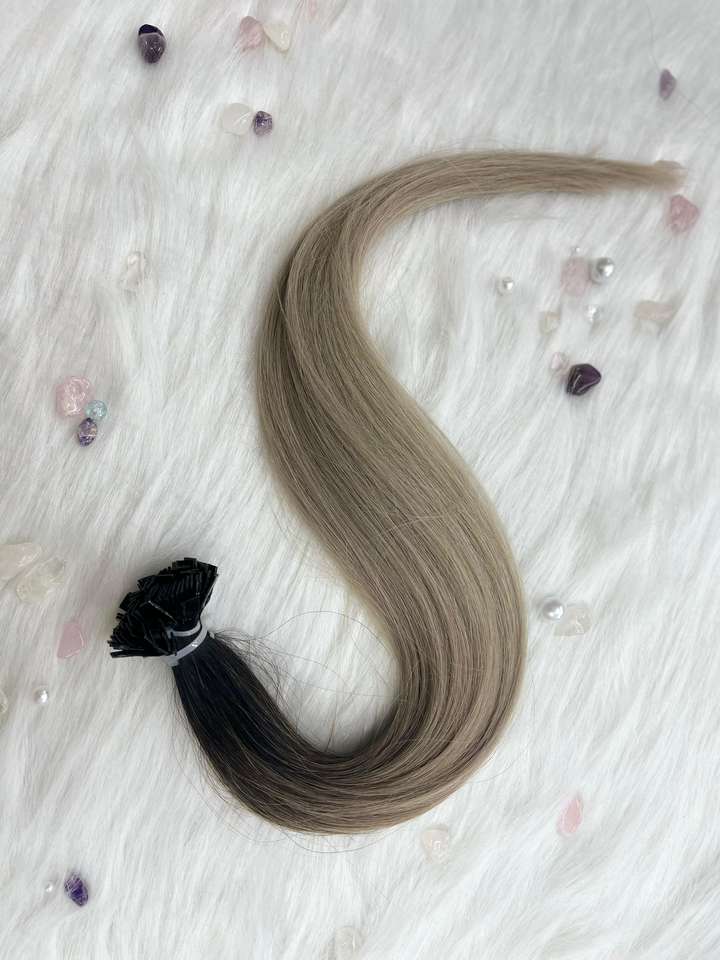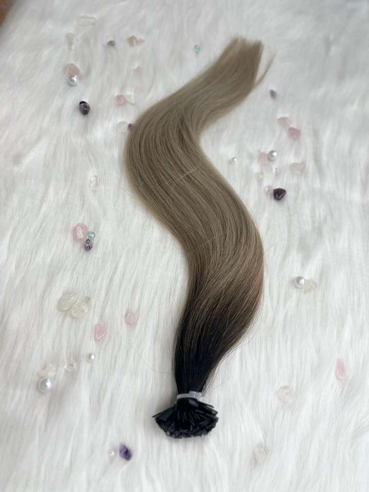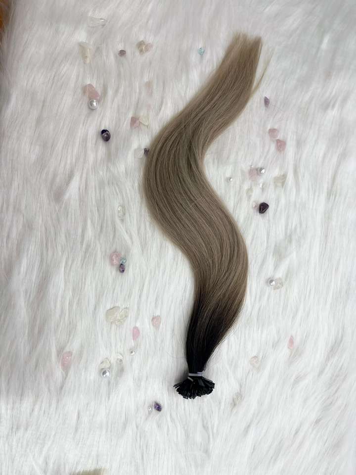 ผมต่อเคราติน1B/เงินแบบไล่เฉดสีผมของมนุษย์ทำจากเส้นด้ายอัจฉริยะเกรดรัสเซีย