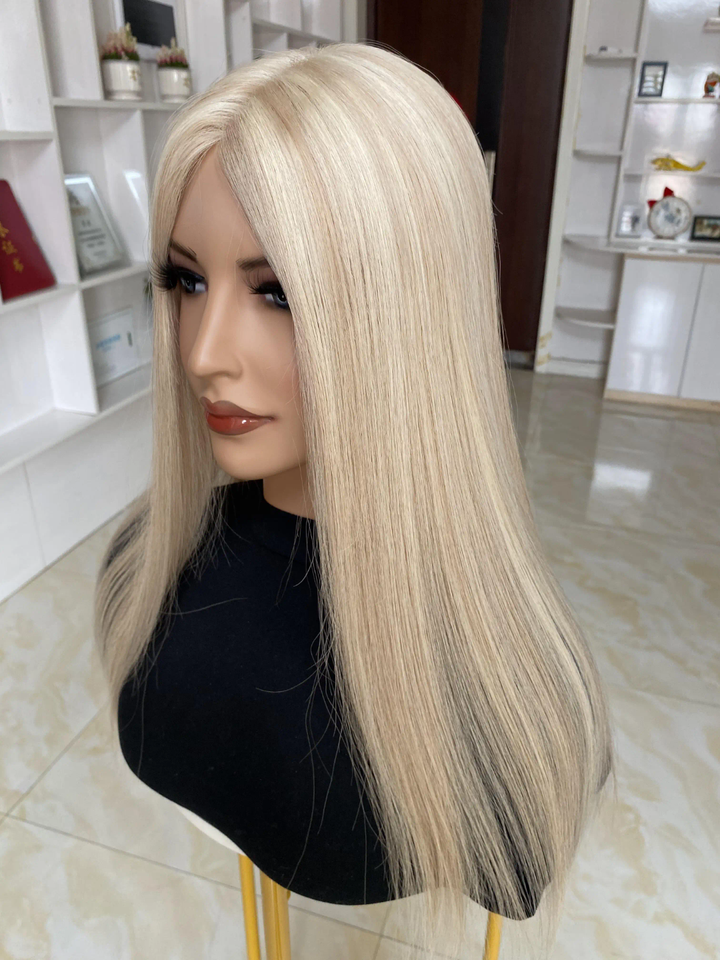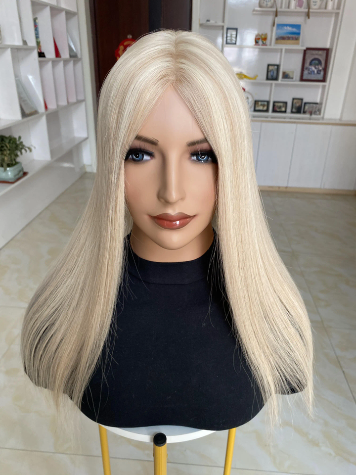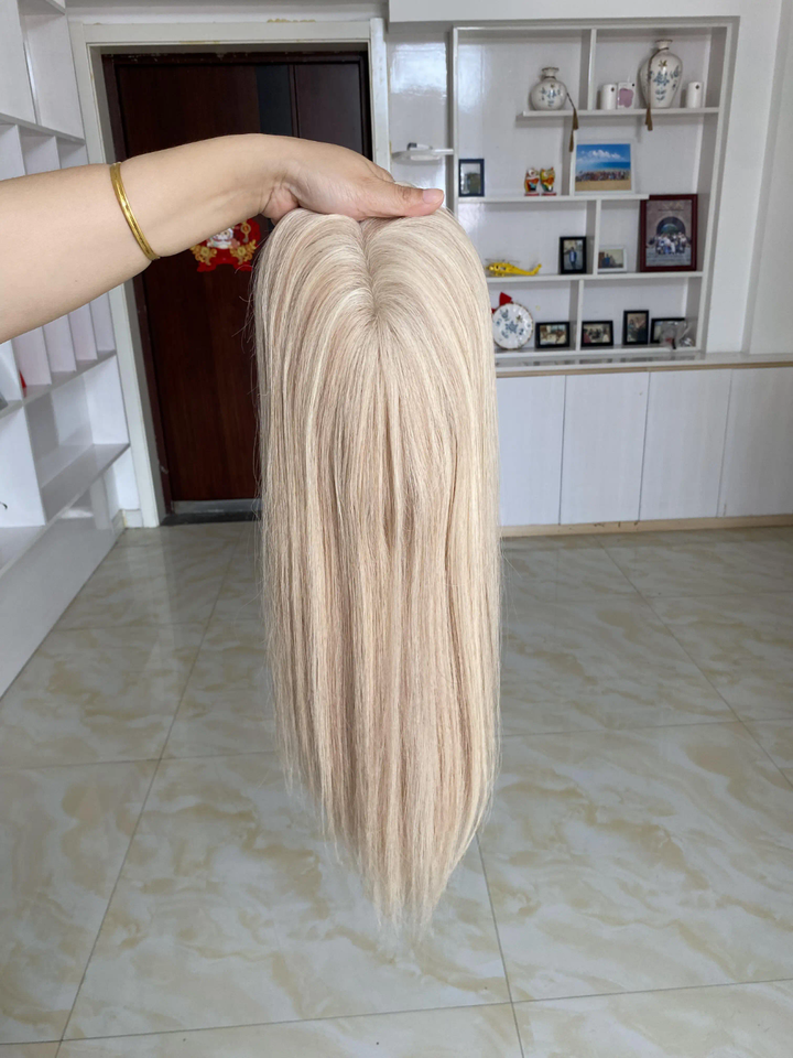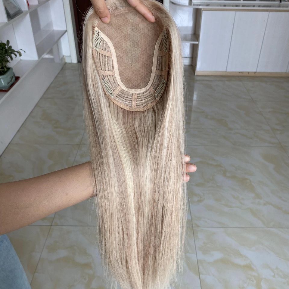 ท็อปเปอร์ผมแท้สีบลอนด์ออมเบรแบบตรง, แฮร์พีชฐานโมโนรูปตัวยูพร้อมคลิปสำหรับผู้มีปัญหาผมร่วง