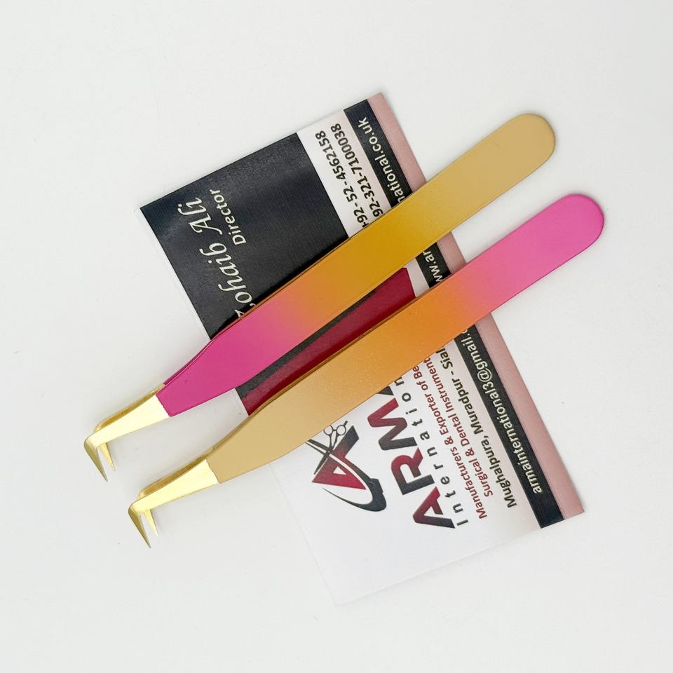 แหนบต่อขนตาปลอมปลายทองเคลือบแบบ Ombre บูต90องศา