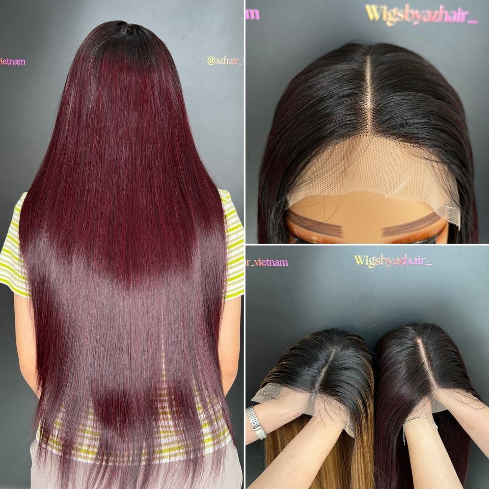 วิกผมคนเวียดนามสีผมตรงกระดูกสีออมเบรเบอร์กันดีเข้มเงางามเรียบลื่นสไตล์คลื่นธรรมชาติ