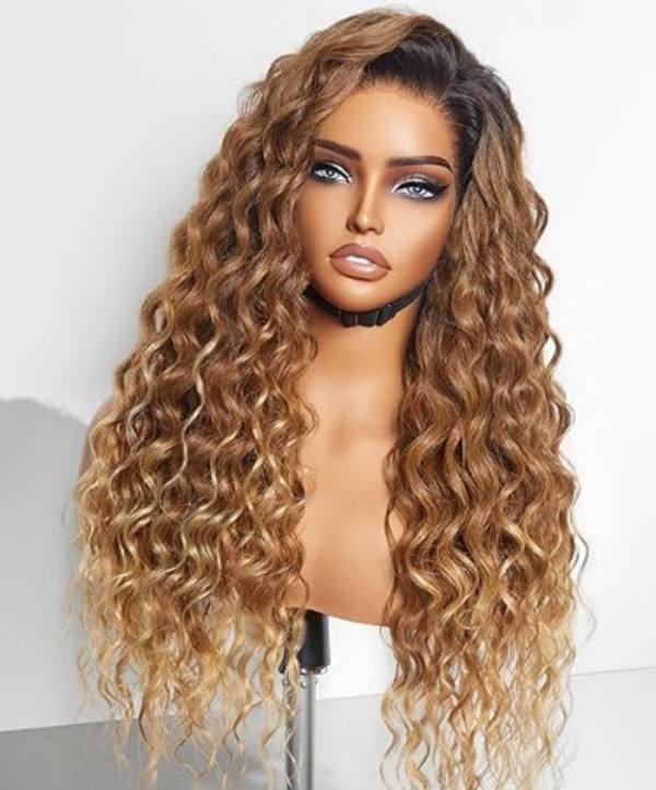 วิกผมหยิกธรรมชาติสีออมเบร13x4วิกผมด้านหน้าลูกไม้วิกผมเปรูคลื่นน้ำสำหรับผู้หญิงผิวดำ