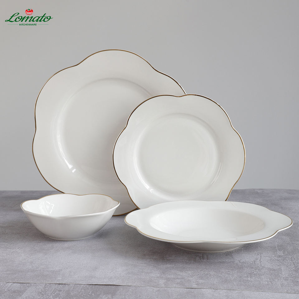 จานพอร์ซเลนหรูหราขนาด20.5ซม. ชุดภาชนะสำหรับดื่มและอาหารวัสดุ ABS ดีไซน์ทันสมัยปรับแต่งได้สำหรับโรงแรมและร้านกาแฟ