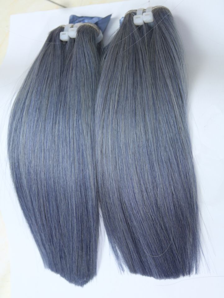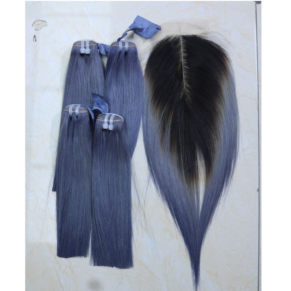 Ombre Grey Straight Hair Bundles With Black Roots And Matching Straight Lace Closure Human Hair Extensions Wholesale Price