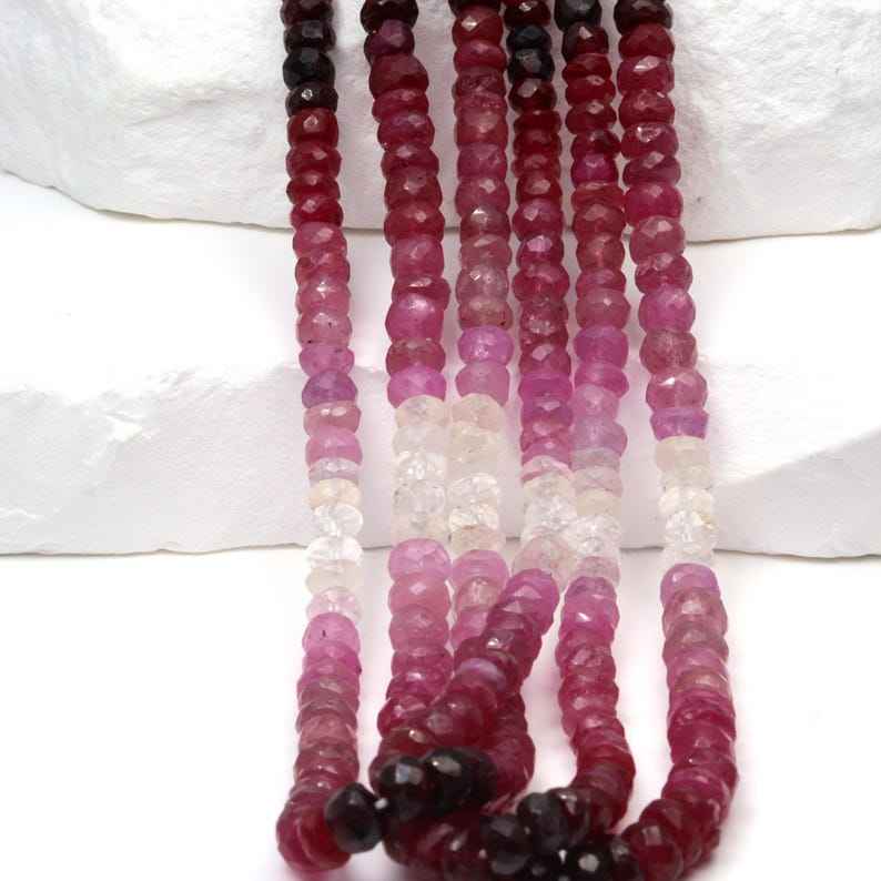 ลูกปัดรูปทรงรอนเดลเหลี่ยมเพชรพลอยสีแดงอมชมพูขนาด 4.5 มม. 5.5 มม. สำหรับทำเครื่องประดับจากอัญมณีธรรมชาติ