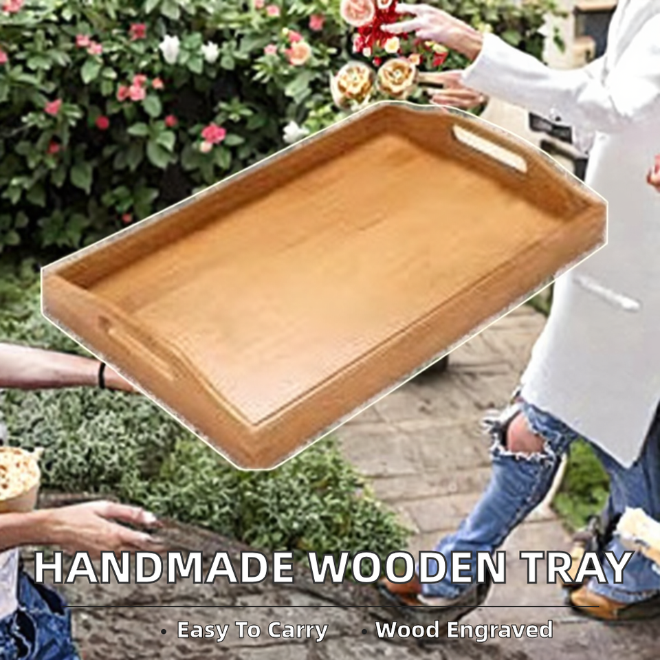 ถาดเสิร์ฟไม้แกะสลักแบบพกพา ผลิตด้วยมือในอินเดีย ยี่ห้อโอเมก้าเมทัลส์ สไตล์โมเดิร์นยุโรปอเมริกัน เหมาะสำหรับใช้ในบ้าน ร้านอาหาร บาร์ โรงแรม งานแต่งงาน