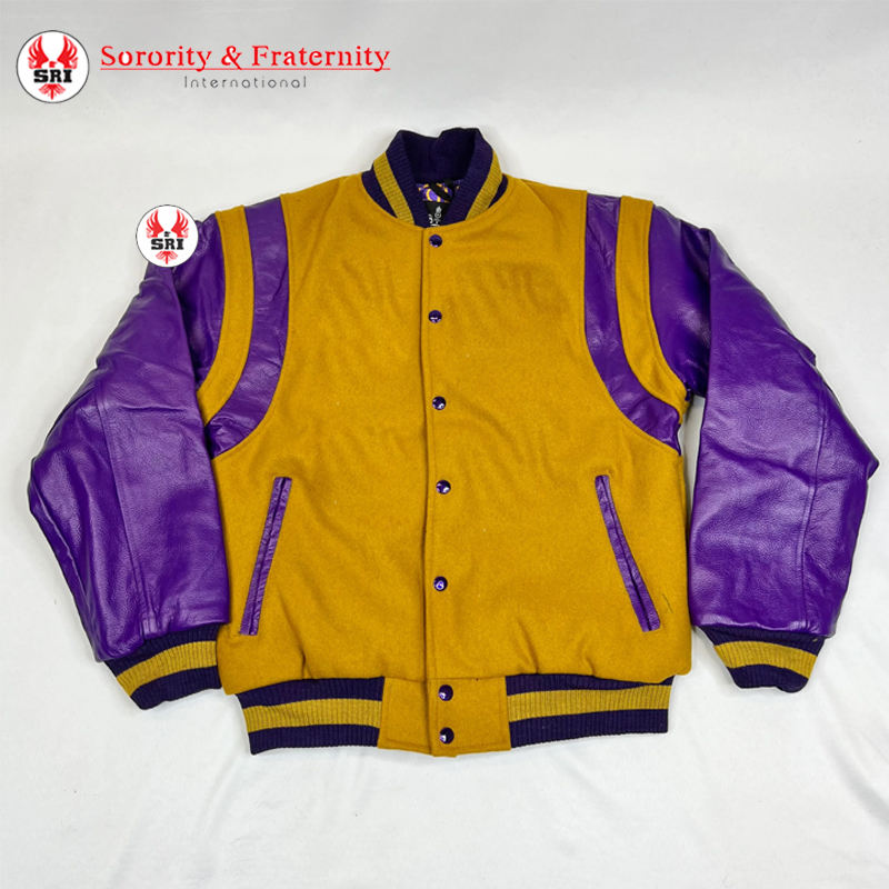 เสื้อแจ็คเก็ตวาร์ซิตี้ปักลายโอเมก้า พีเอสไอ ฟราทราร์ดี้ สำหรับผู้ชาย | เสื้อแจ็คเก็ตวาร์ซิตี้แขนหนังปักลายสัญลักษณ์สมาคมนักศึกษา