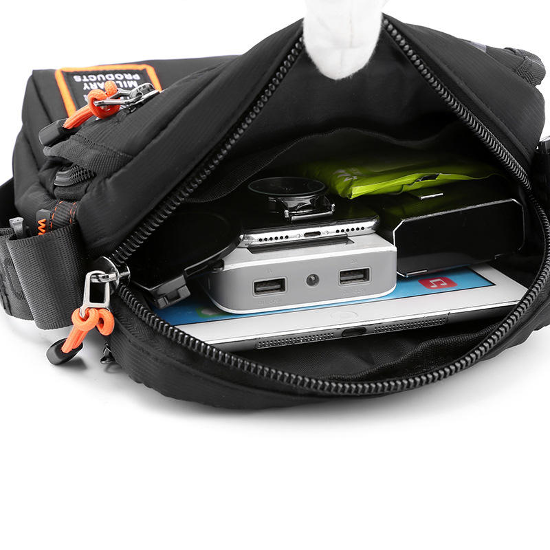 กระเป๋าสะพายข้างผู้ชายโอเมอร์กระเป๋าคาดหน้าอกกลางแจ้งแบบลำลองทำจากไนลอนพร้อมดีไซน์ลายตัวอักษรสำหรับการเดินทางและการใช้งานในชีวิตประจำวัน