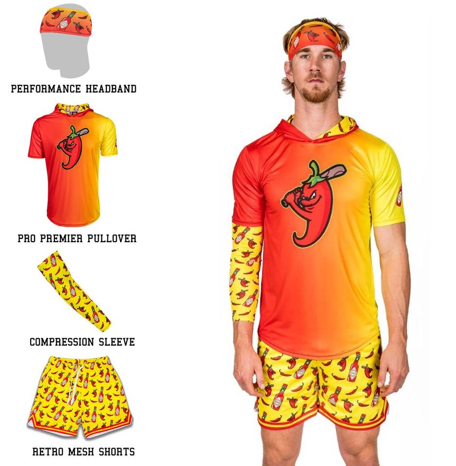 Ommiz หมวกเบสบอลแขนสั้นไฮเปอร์แม็ก, เสื้อฮู้ดผ้าตาข่ายกางเกงขาสั้นสไตล์เบสบอลไลฟ์สไตล์ hyperdri ปลอกรัดและที่คาดผม