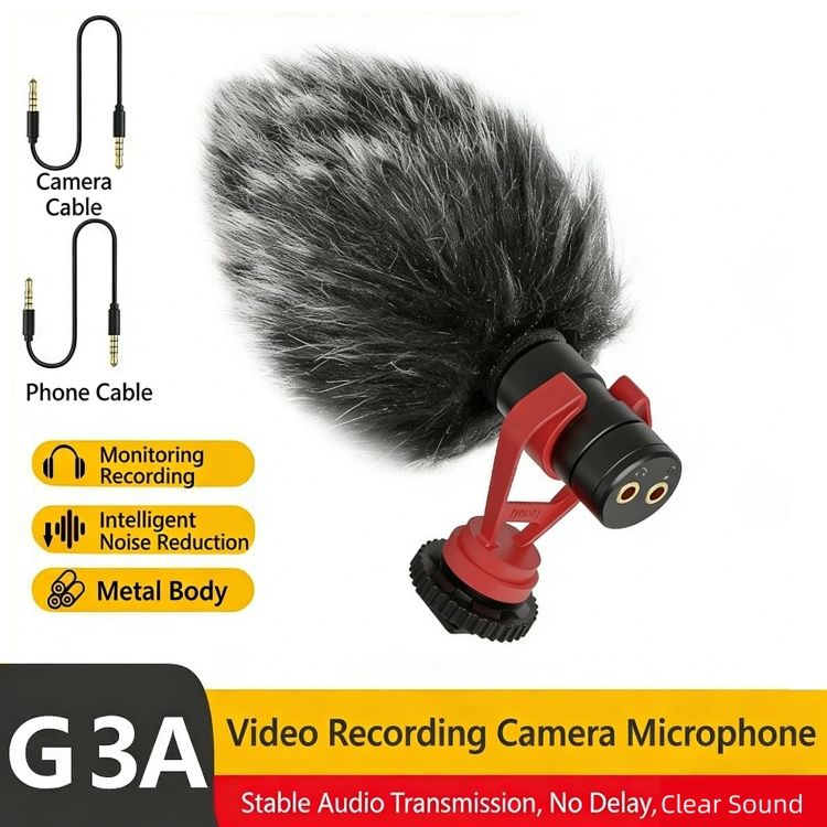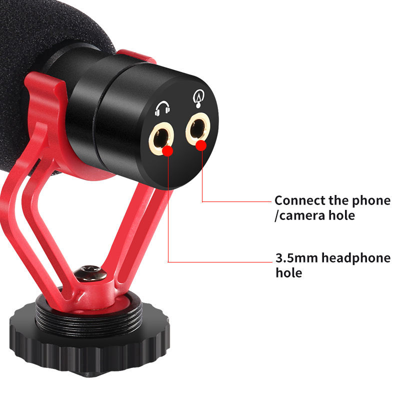 ไมโครโฟนติดกล้อง/โทรศัพท์, ไมค์บันทึกวิดีโออเนกประสงค์พร้อมระบบตรวจสอบแบบเรียลไทม์/ลดเสียงรบกวนสำหรับกล้อง DSLR/สมาร์ทโฟน
