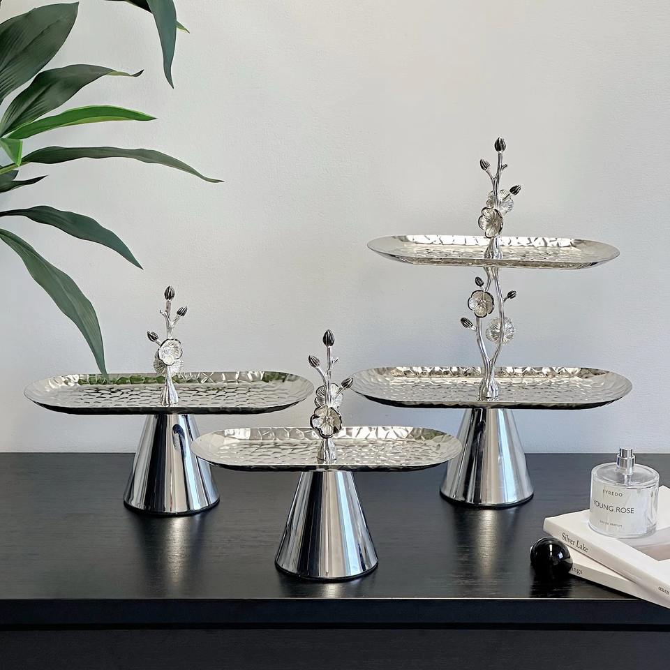 แผ่นสแตนเลสสองชั้นถาดทำขนมทรงไข่สีขาวดำดีไซน์ดอกไม้สำหรับงานปาร์ตี้