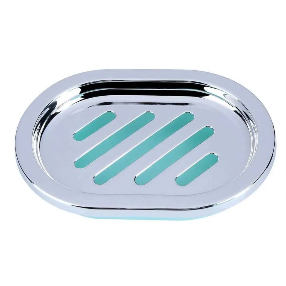 ลดราคาสแตนเลสสีฟ้าและสีเงินอุปกรณ์ห้องน้ำ-กล่องสบู่ที่ใส่แปรงสีฟันชุดถังขยะขนาดเล็ก5ชิ้น