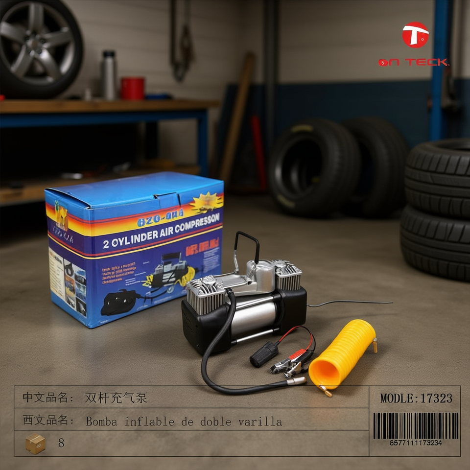 เครื่องอัดลมแบบสองกระบอกสูบ On Teck รุ่น 2 กระบอก 17323 สำหรับเติมลมยางรถยนต์