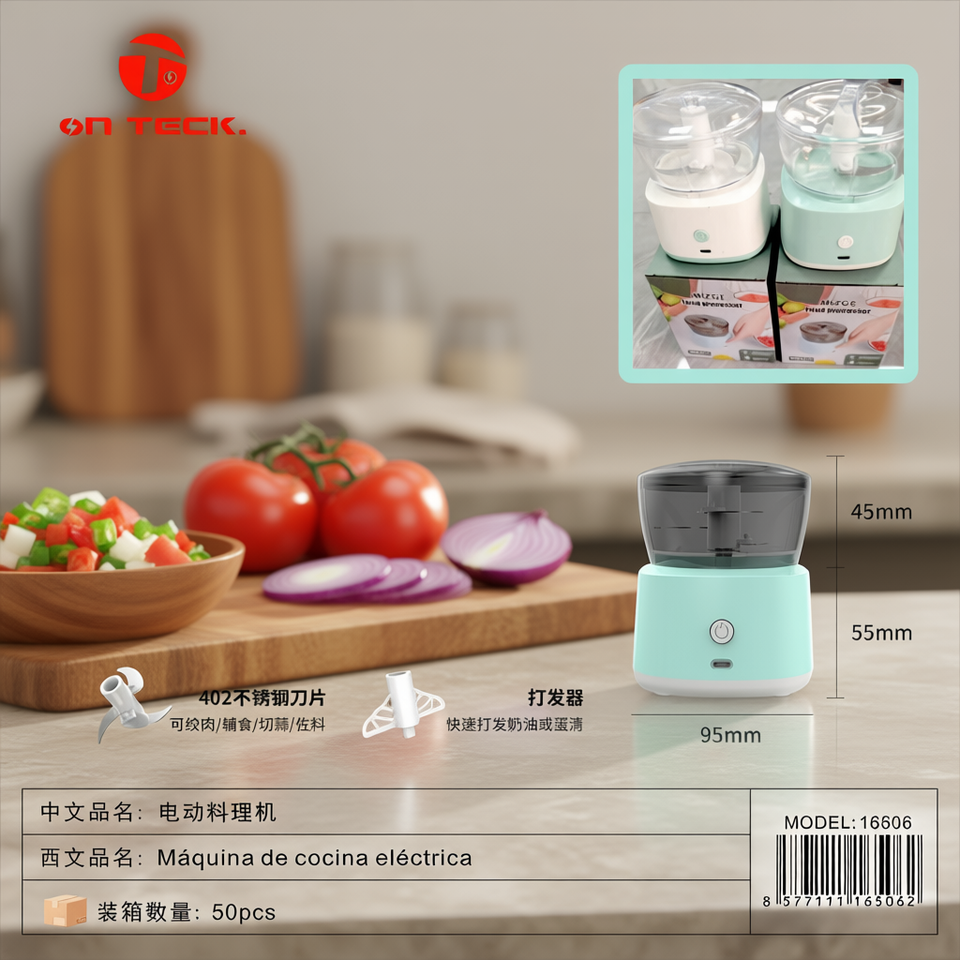 เครื่องเตรียมอาหารไฟฟ้า On Teck รุ่น 402 ใบมีดสแตนเลสขนาด 95 มม. เครื่องบดสับขนาดเล็กพร้อมเครื่องผสมสำหรับทำอาหาร