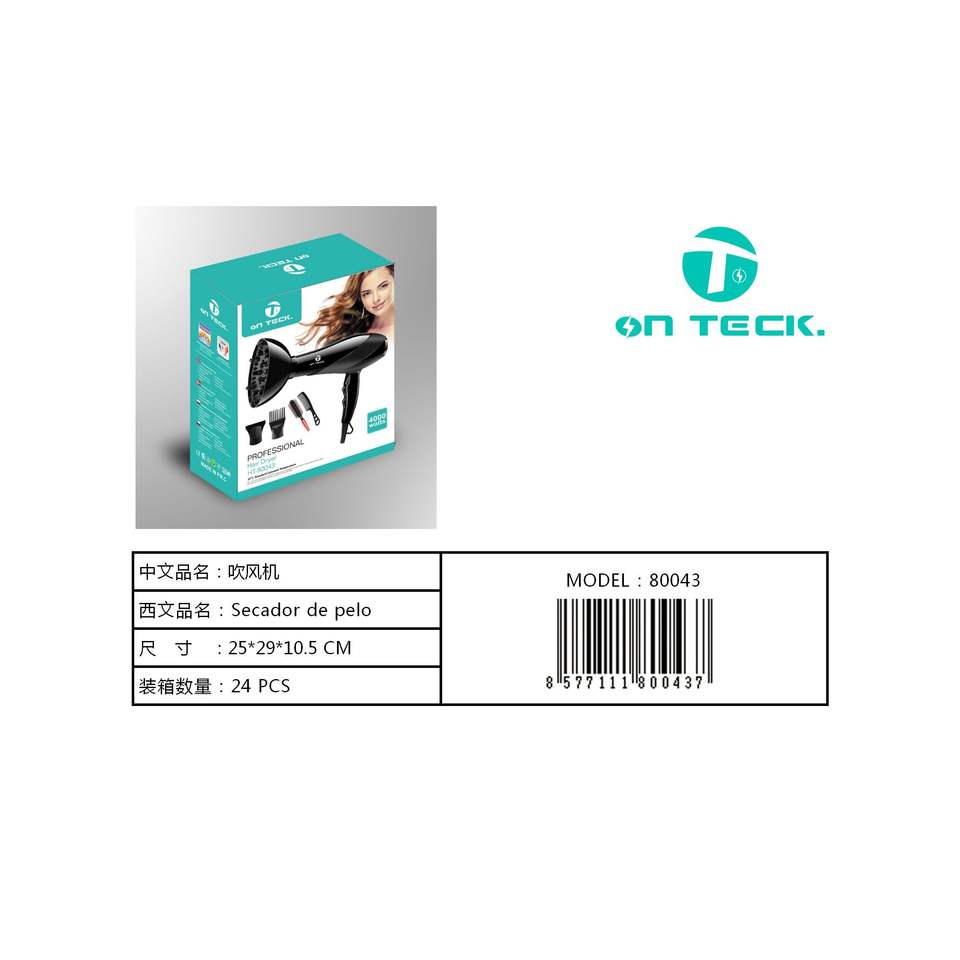 ไดร์เป่าผมออนเทค 800 วัตต์ มอเตอร์ AC 110000 รอบต่อนาที พร้อมหัวกระจายลม สำหรับใช้ในโรงแรม