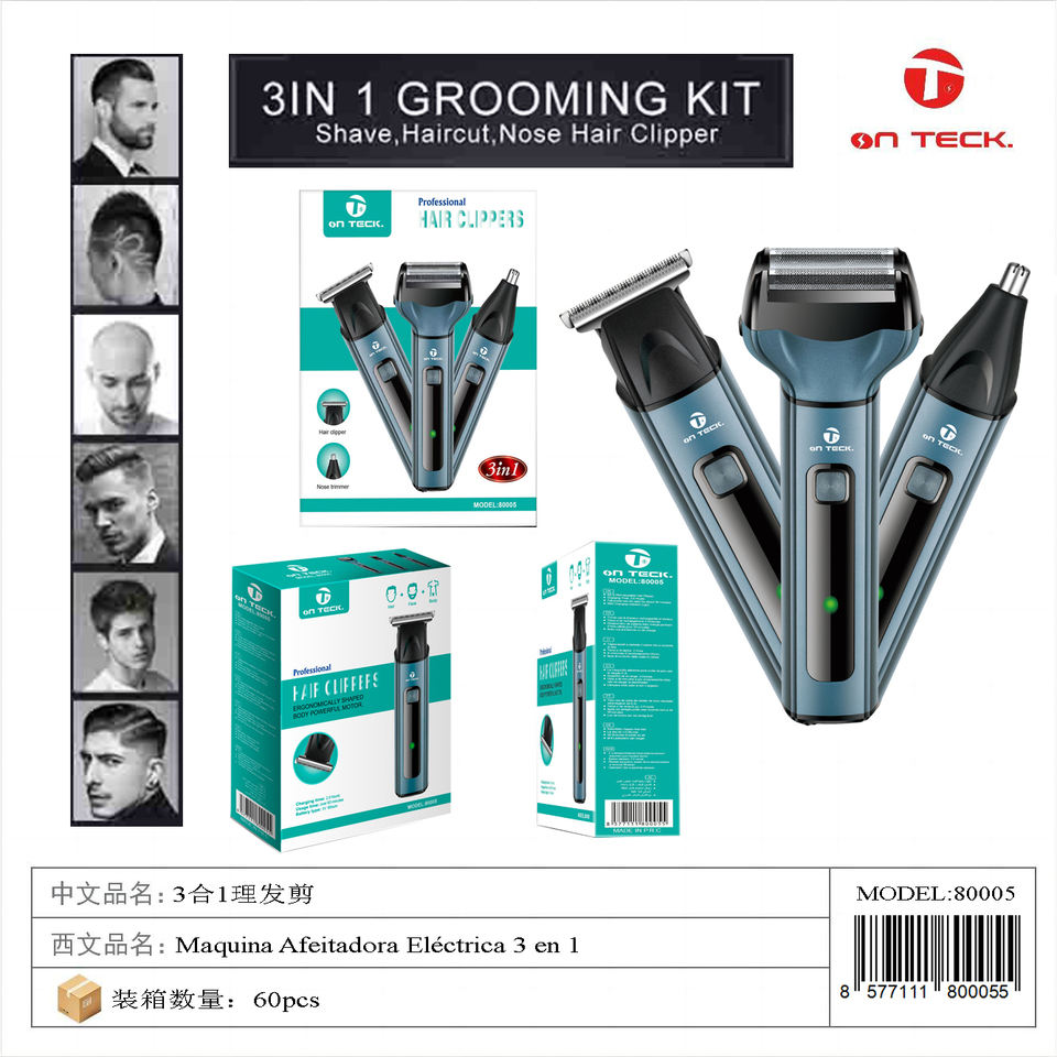 เครื่องตัดขนออนเทค 6 ชิ้น ชุดอุปกรณ์กรูมมิ่ง ใบมีดสแตนเลสแบบใช้แบตเตอรี่ สำหรับผู้ชาย โกนหนวดเครา พร้อมจอแสดงผล LED