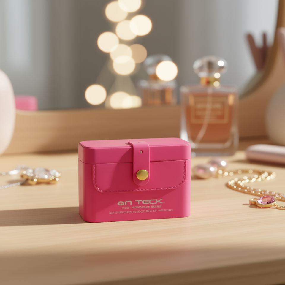 กล่องใส่เครื่องประดับขนาดเล็กทรงสี่เหลี่ยมผืนผ้า ยี่ห้อออนเทค พร้อมตัวล็อคแบบหัวเข็มขัด กล่องเก็บเครื่องประดับสีพื้น ขนาดกะทัดรัด บรรจุ 10 ชิ้น