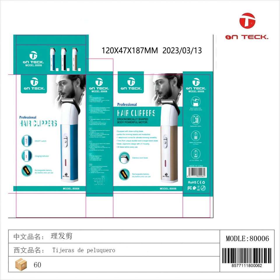 ON Teck ปัตตาเลี่ยนตัดผมมืออาชีพ2000มิลลิแอมป์ต่อชั่วโมง IPX7แบตเตอรี่ Li-ion กันน้ำใบมีดสแตนเลสสำหรับใช้ในร้านเสริมสวย