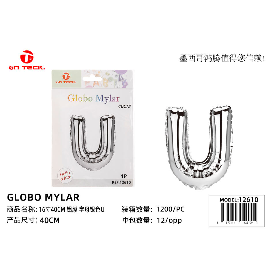 ลูกโป่งฟอยล์รูปตัวอักษรสีเงินขนาด 16 นิ้ว ยี่ห้อ On Teck Sa De Cv สำหรับตกแต่งงานปาร์ตี้ งานวันเกิด งานแต่งงาน ใช้กับก๊าซฮีเลียมได้