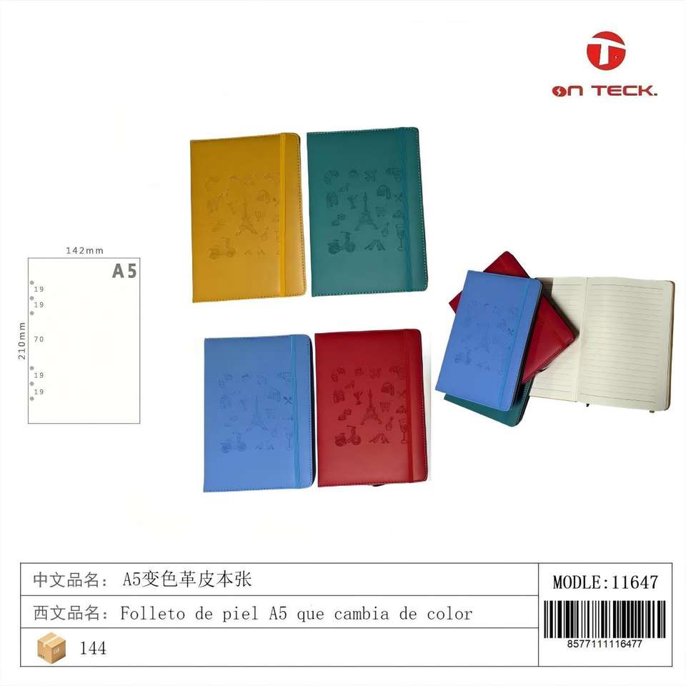 สมุดบันทึกหนัง On Teck Sa De Cv A5 เปลี่ยนสีได้ ทนทาน พกพาสะดวก น้ำหนักเบา สำหรับใช้ในบ้าน สำนักงาน โรงเรียน