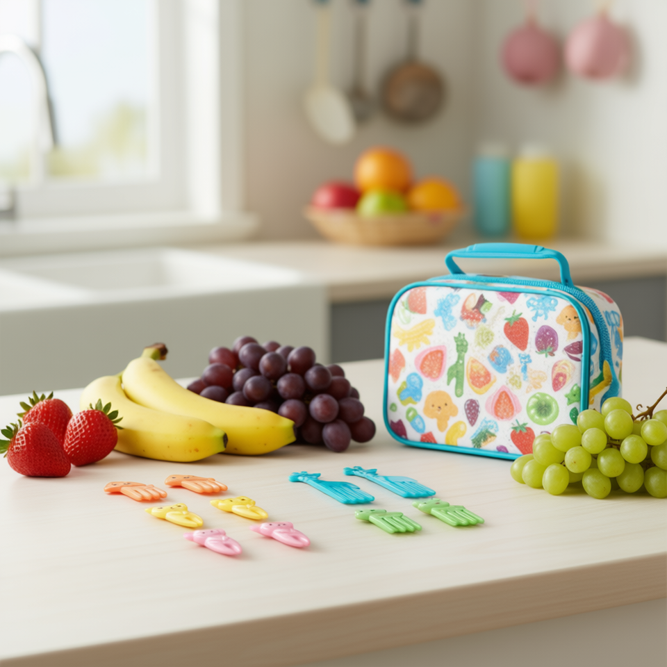 ออนเต็กซา เดอ ซีวีส้อมผลไม้การ์ตูนพลาสติกปลอดสารบีพีเอแบบพกพาสำหรับเด็กเดินทางใช้ในครัวบ้าน 11464