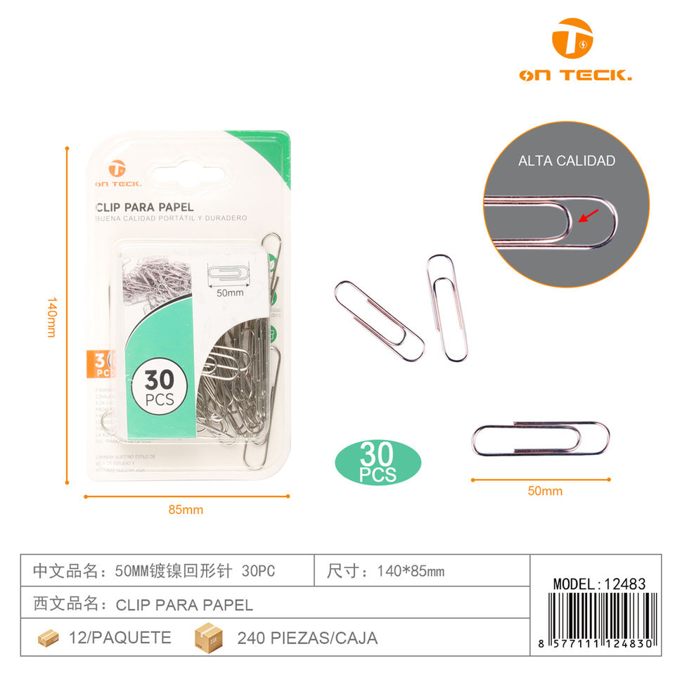 คลิปหนีบกระดาษออนเทค ซา เดอ ซีวี 50 มม. 30 ชิ้น โลหะ สำหรับใช้ในสำนักงานและโรงเรียน