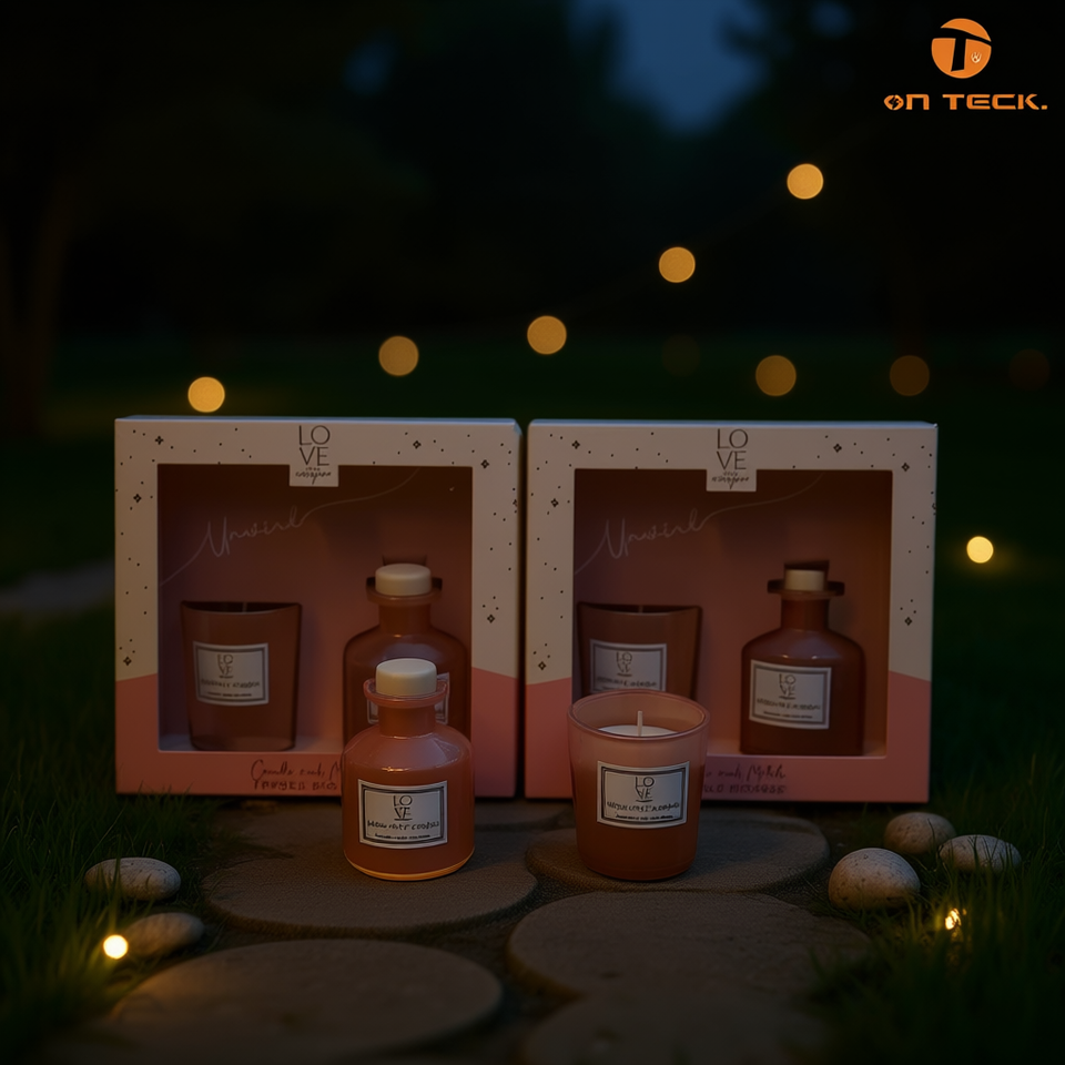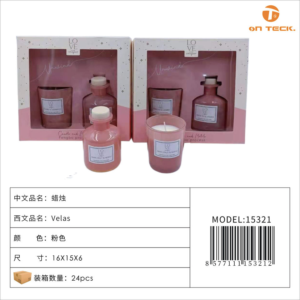 เทียนแก้วหอมกลิ่นออนเทค สีชมพู ของตกแต่งบ้าน ของขวัญ ไฟสนามหญ้ากลางแจ้ง 15321