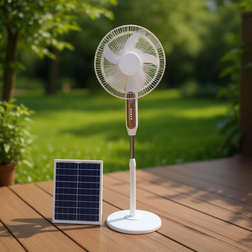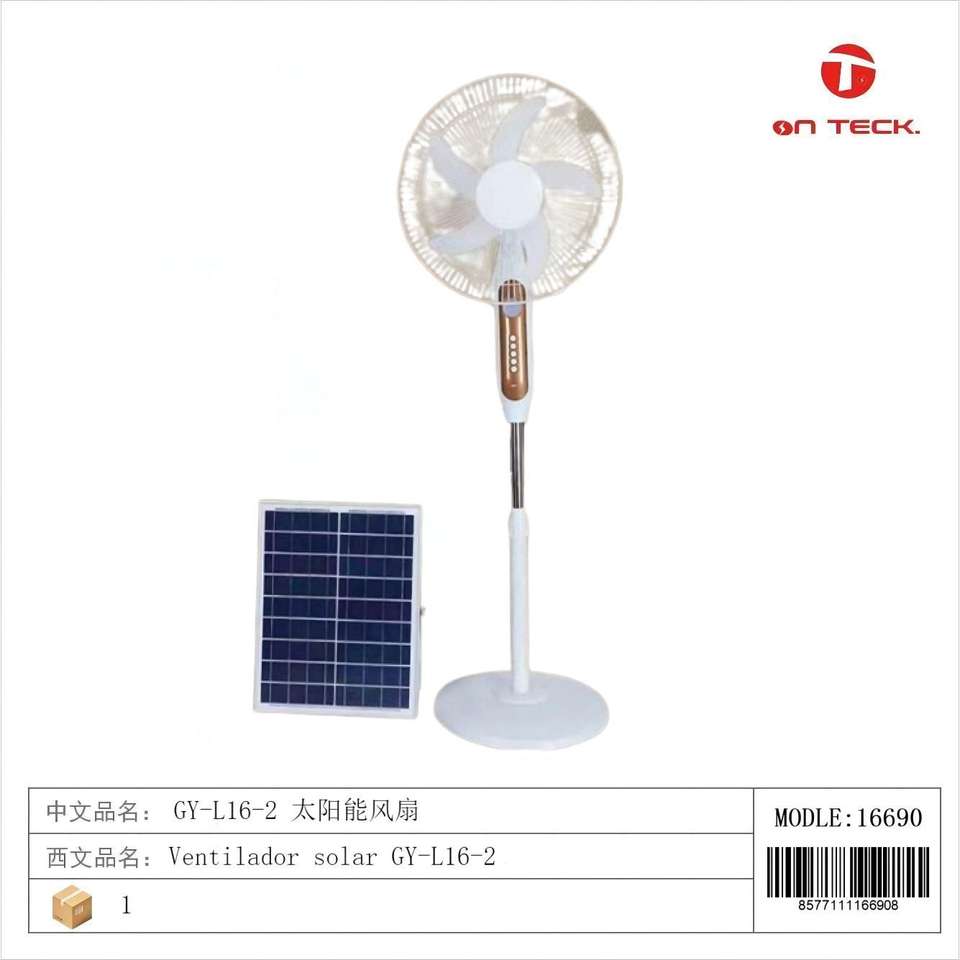 พัดลมพลังงานแสงอาทิตย์ On Teck 5 ใบพัด มอเตอร์ดีซี แบบตั้งพื้น สำหรับภายนอกอาคาร เป็นมิตรกับสิ่งแวดล้อม