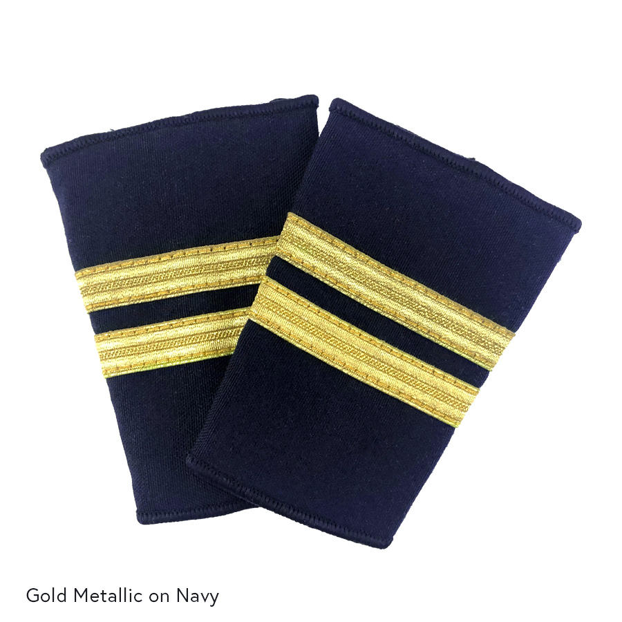 เครื่องหมายยศนักบินชั้นเรียนแบบ 2 แถบ สีทองเมทัลลิกบนพื้นดำ