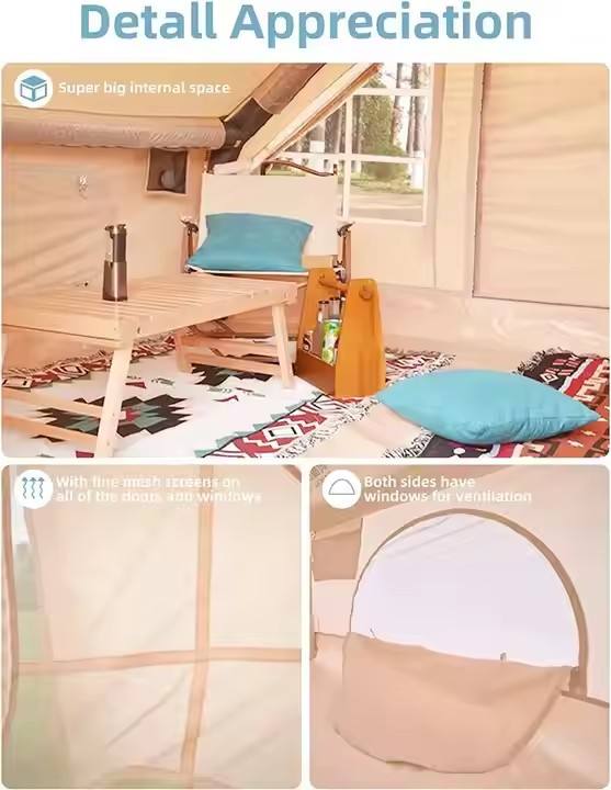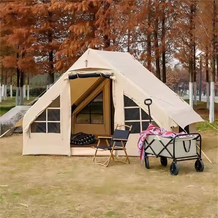 เต็นท์เป่าลมสำหรับห้องโดยสารหนึ่งห้องนอนใช้บังแดดสำหรับการเดินทางพักผ่อนของครอบครัวผลิตในประเทศจีนพร้อมผ้าอ็อกซ์ฟอร์ดสำหรับตั้งแคมป์