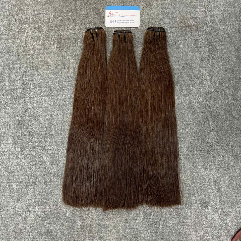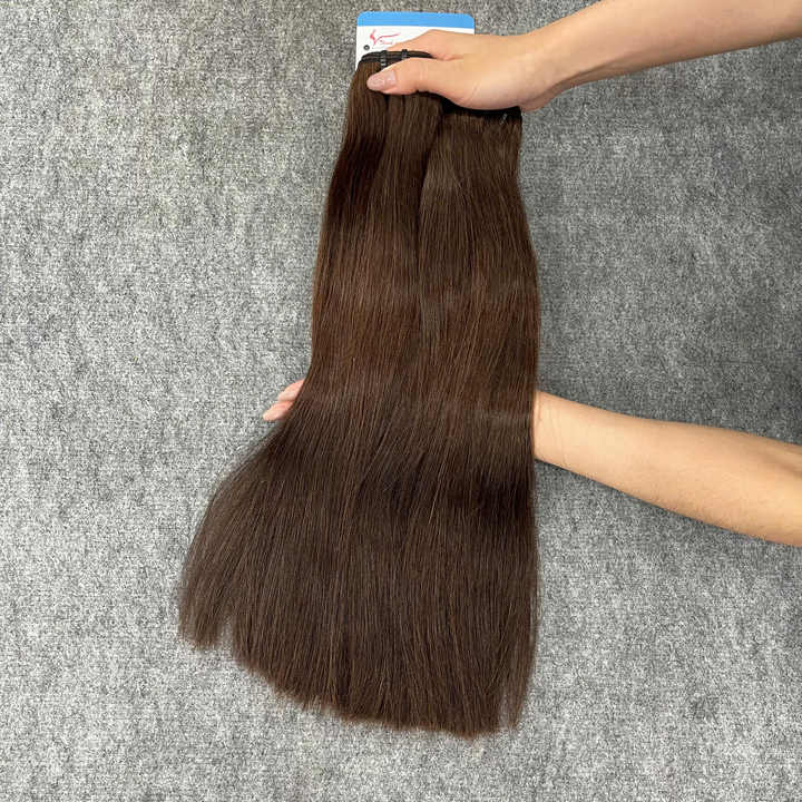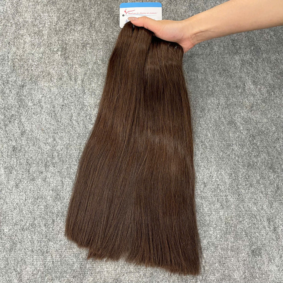 ผมเวียดนามแท้แบบดิบ สีน้ำตาลธรรมชาติ แบบตรง ทอแบบเครื่องจักร คุณภาพสูงมาก ดึงเส้นผมสองชั้น ต่อผมแบบเส้น สำหรับผู้บริจาคเพียงคนเดียว